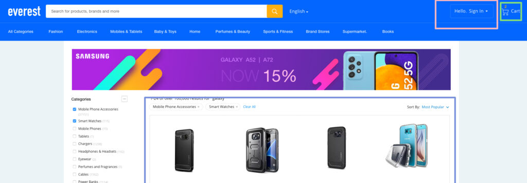 La idea es sencilla: aplicar la misma filosofía de los microservicios, pero en el lado cliente. Dividir la interfaz en módulos más pequeños, autónomos, y sobre todo, independientes. Cada uno con su propio ciclo de vida: se desarrolla aparte, se testea aparte, se despliega aparte… y si algo peta, que al menos no se lleve todo por delante, acotando el fallo. Si lo piensas bien, es una solución muy elegante: al estar en un “cajoncito”, si falla, puedes dejar esa funcionalidad en “modo mantenimiento”, mientras todo lo demás sigue funcionando tan pancho. Dicho esto, podemos concluir que los microfrontends son fragmentos individuales que encapsulan una funcionalidad especifica, normalmente alineada a un dominio funcional o a una responsabilidad concreta. Veámoslos con un ejemplo. El típico e-commerce.